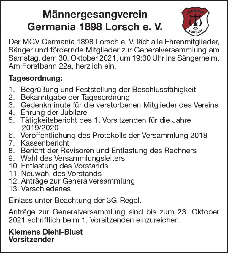 Germania Lorsch geht in die Vollen – der Männergesangverein singt wieder