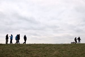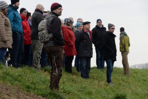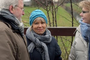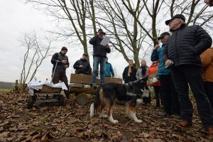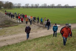 Dem Bollerwagen folgend – dessen Inhalt eine hochprozentige Aufwärmung sowie eine kleine Stärkung in Form von Schmalzbroten versprach – brach die Gruppe in Richtung der Baden-Württembergischen Landesgrenze auf. Bei Plaudereien über das Gestern und Heute in Lorsch, Erinnerungen an manches Erlebte, wie das Schlittschuhlaufen auf den Weschnitzauen, war der bedeckte, graue Himmel der guten Stimmung nicht abträglich.