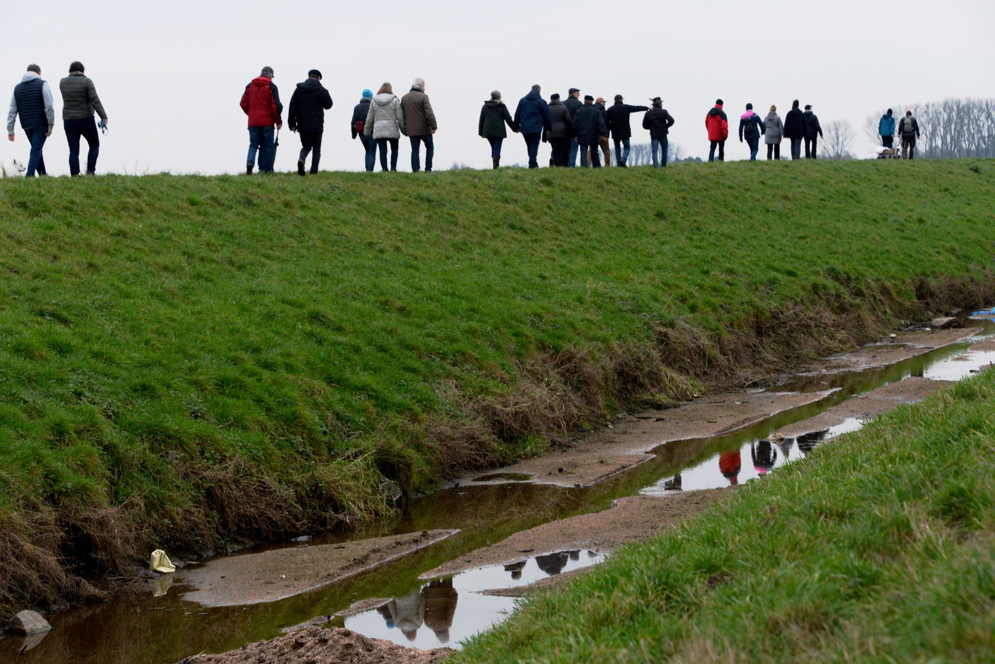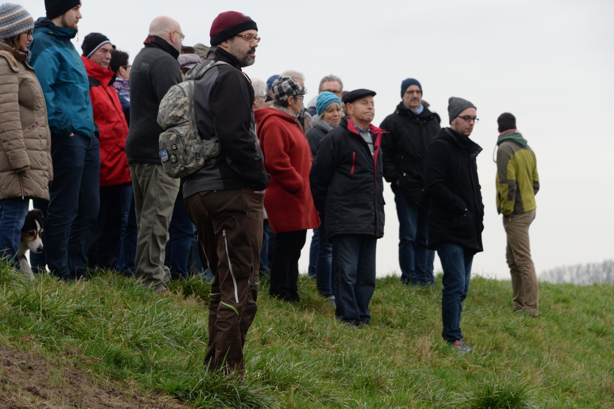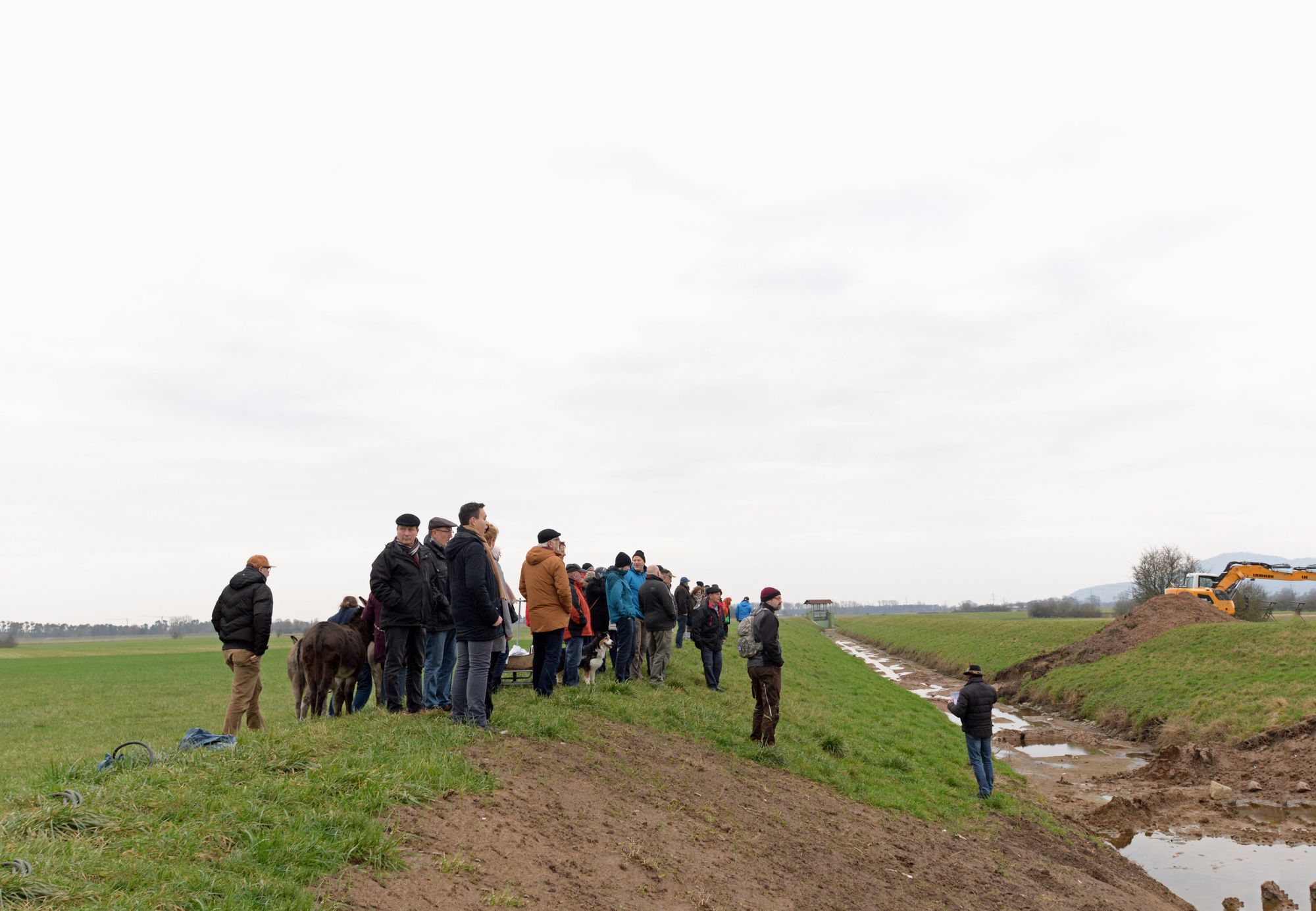 Dem Bollerwagen folgend – dessen Inhalt eine hochprozentige Aufwärmung sowie eine kleine Stärkung in Form von Schmalzbroten versprach – brach die Gruppe in Richtung der Baden-Württembergischen Landesgrenze auf. Bei Plaudereien über das Gestern und Heute in Lorsch, Erinnerungen an manches Erlebte, wie das Schlittschuhlaufen auf den Weschnitzauen, war der bedeckte, graue Himmel der guten Stimmung nicht abträglich.